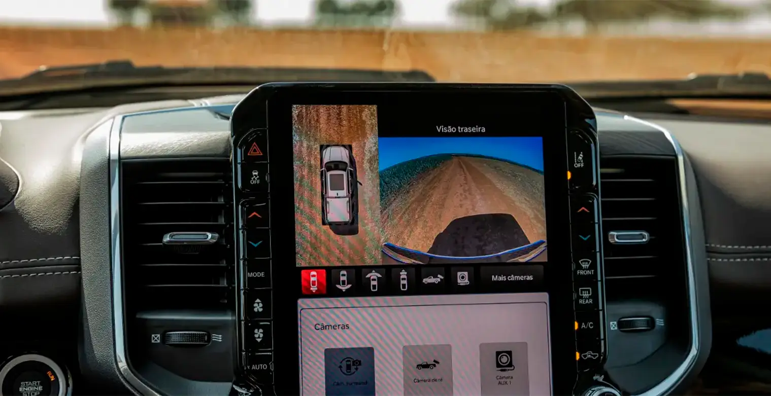 • Sistema de multimidia Uconnect de 14.5" com tela sensivel ao toque, Apple Carplay e Android Auto com conexao sem fio
